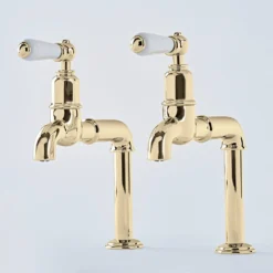 Perrin & Rowe Mayan Lever Deck Mounted Bibcocks (Pair) – Gold