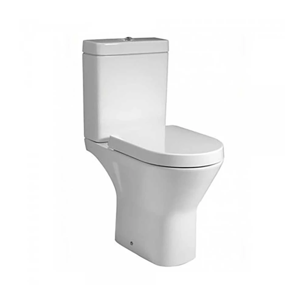 - Open-back, close coupled toilet and soft close seat