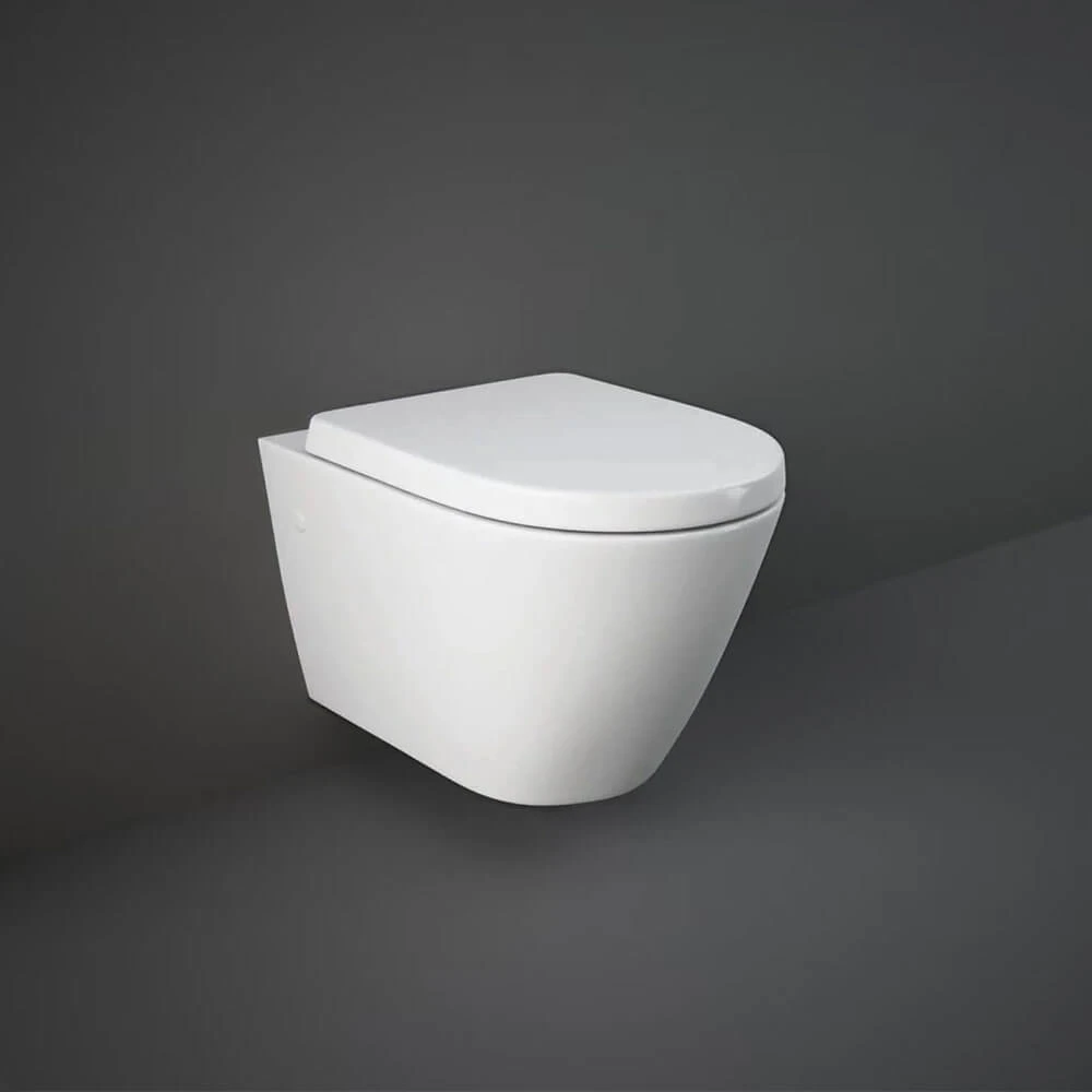 Constructed from white, vitreous ceramic and with a unique rimless design, the RAK Resort Wall Hung Toilet can provide a wonderfully modern and hygienic feature in your bathroom. Powerful jets of water spray right up inside the bowl to prevent any residue building up or areas left uncleaned. Perfect for any contemporary setting, this toilet comes with a quick release, soft-close seat included for complete convenience.