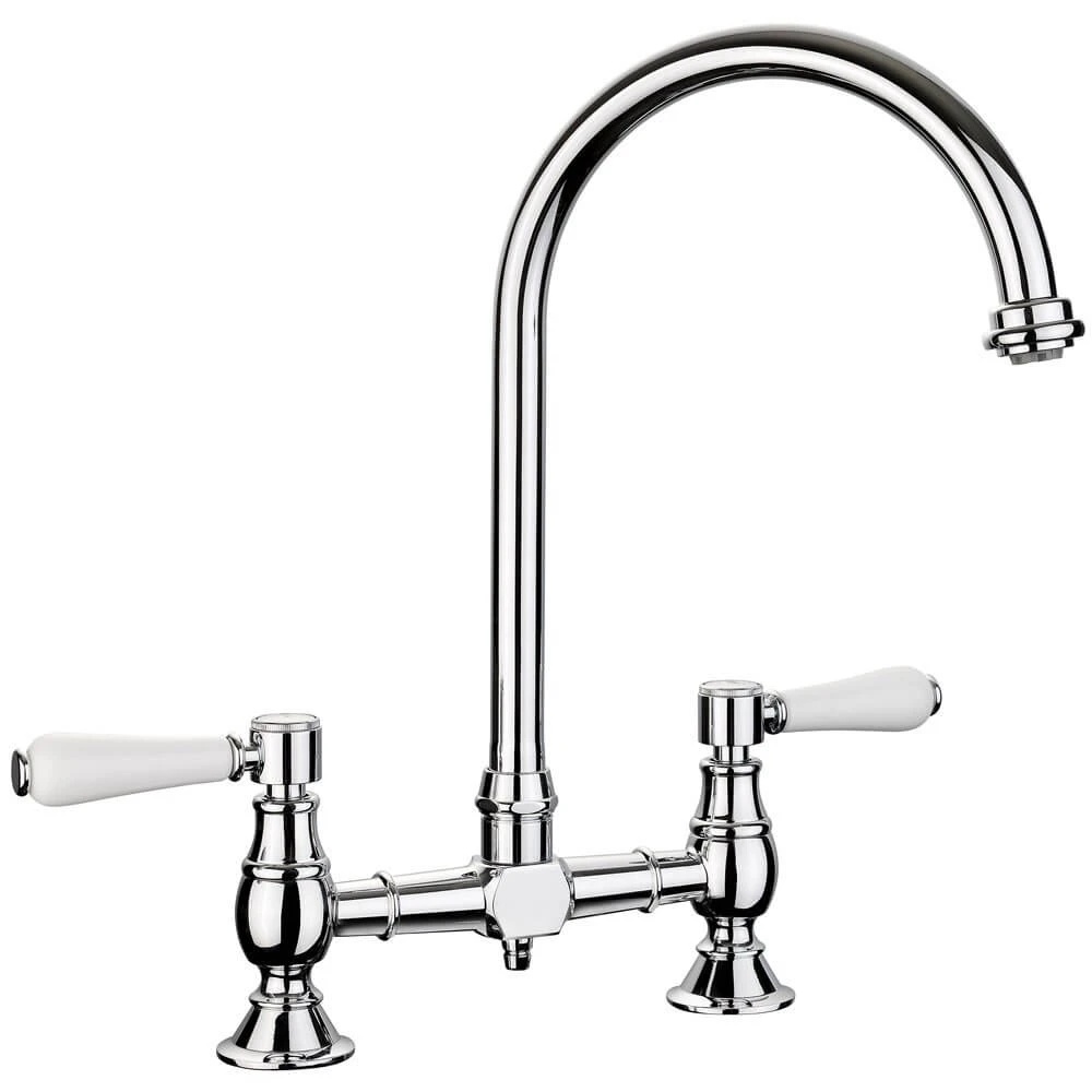 The Rangemaster Belfast bridge is a top of the range traditional kitchen sink mixer tap with a high quality chrome finish. The classic victorian style handles and long C spout add elagance to the overall design, allowing it to fit seamlessly with any traditional style kitchen. The spout also features an aerator which provides a soft, splash-free water flow. Rangemaster can assure you of the quality of their products by offering a 5 year guarantee.