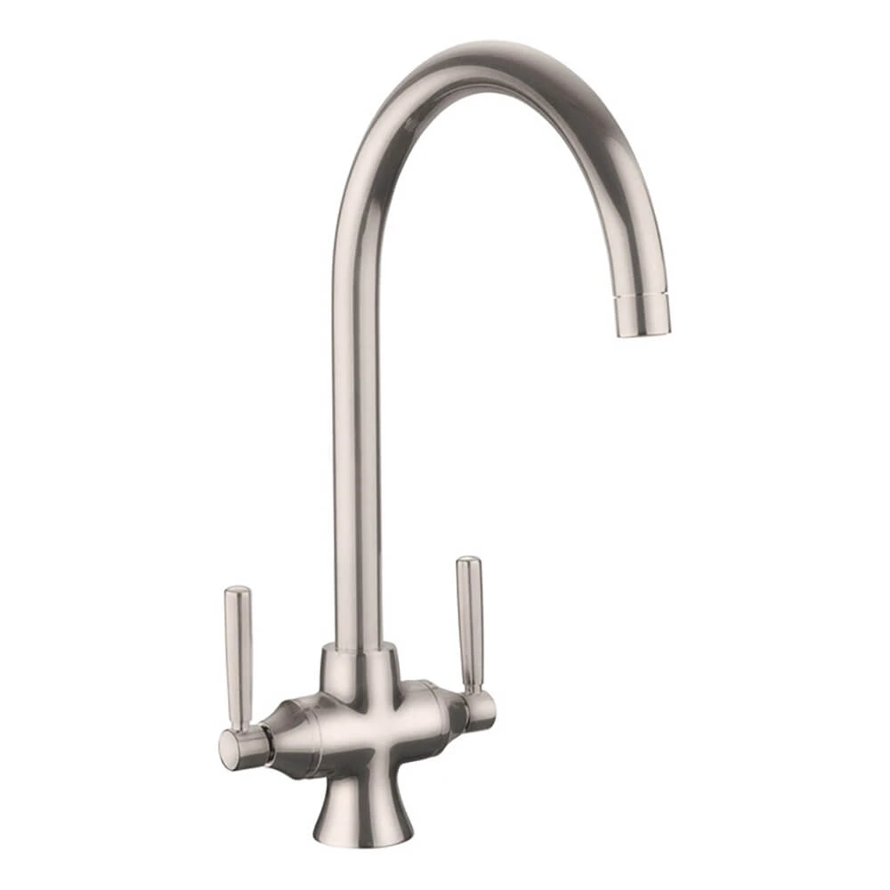 No matter how you want to style your kitchen, the Rangemaster Cruciform Spa Filter kitchen sink mixer tap in brushed nickel somehow manages to blend in without completely being overshadowed. How can you overshadow something that’s both majestic and graceful at the same time, with its neck curving slowly towards the sink and those levers showing quiet sleekness? The brushed nickel finish gives it that unique look that gives it more personality, and topping that off is the overall design that mixes the best qualities of both traditional and modern design. Truly a masterpiece, it’s the perfect centrepiece for any kitchen sink.