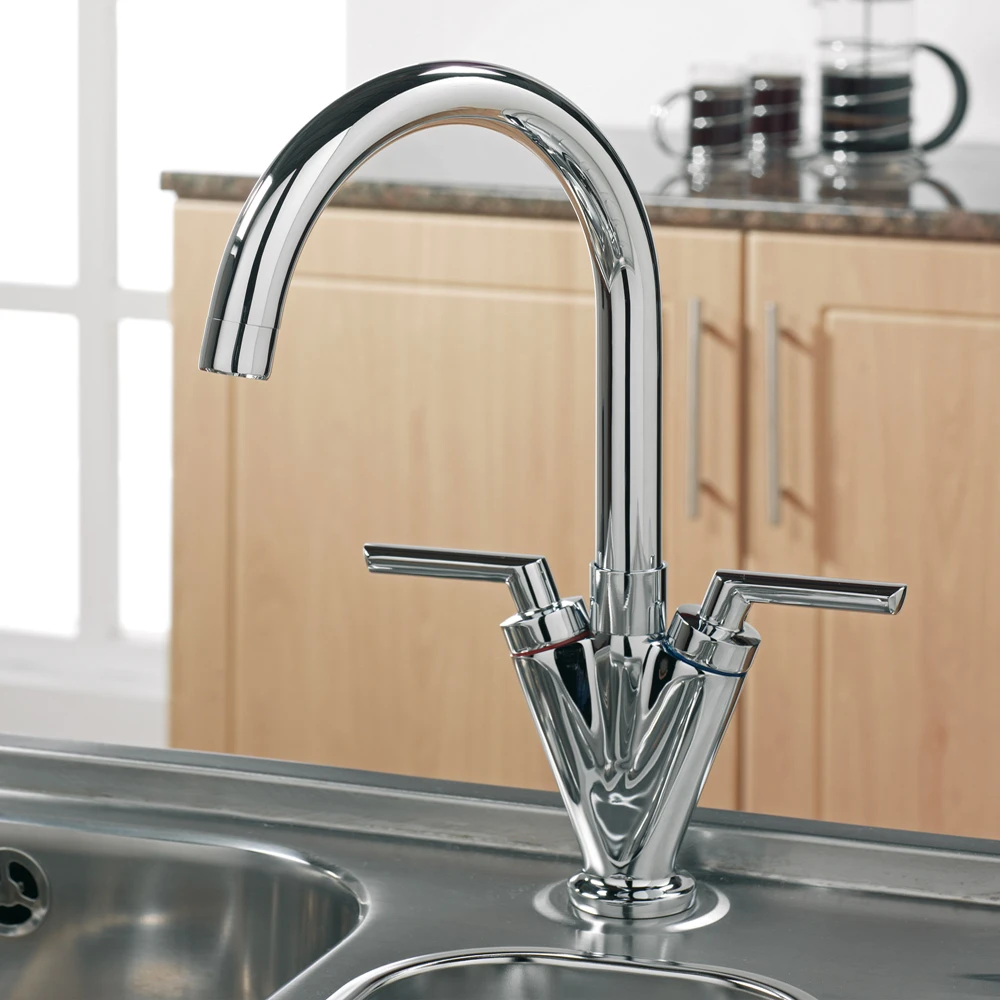 If you want practical, functional fixtures but need a stylish unit that will compliment your kitchen, then look no further than this Sagittarius contract lever monobloc kitchen sink mixer. The smooth curve of the spout provides a contrast to the angular, lever-activated taps, creating a striking modern silhouette.