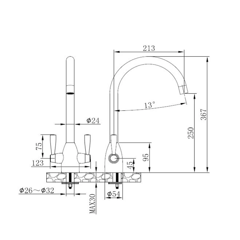 This Sagittarius Forme monobloc sink mixer is a stylish fixture that takes centre stage above any sink. The long curved neck of the spout allows you to fill your sink with minimal splash-back, while the two taps have levers with a modern design. The chrome finish is easy to clean.