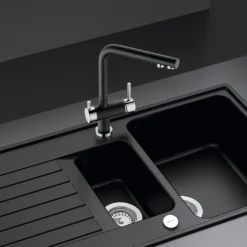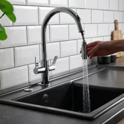 Clearwater Meridian Twin Flow Single Lever Mono Kitchen Tap With Detachable Spout – Chrome/Black