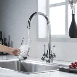 Clearwater Krypton Triple Lever Mono Kitchen Mixer And Cold Filtered Water Tap – Brushed Brass