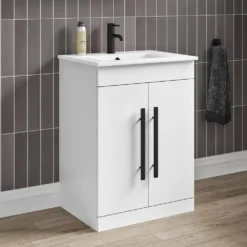 Vellamo Aspire 600mm Floorstanding 2 Door Vanity Unit & Thin Ceramic Basin – Matt Grey