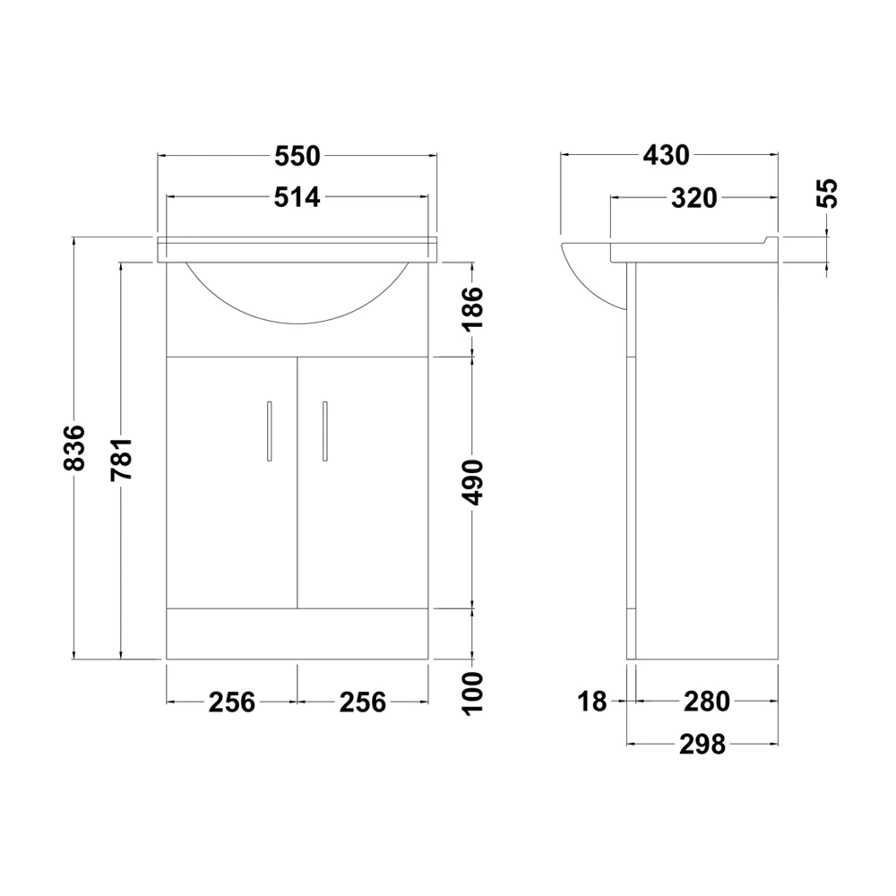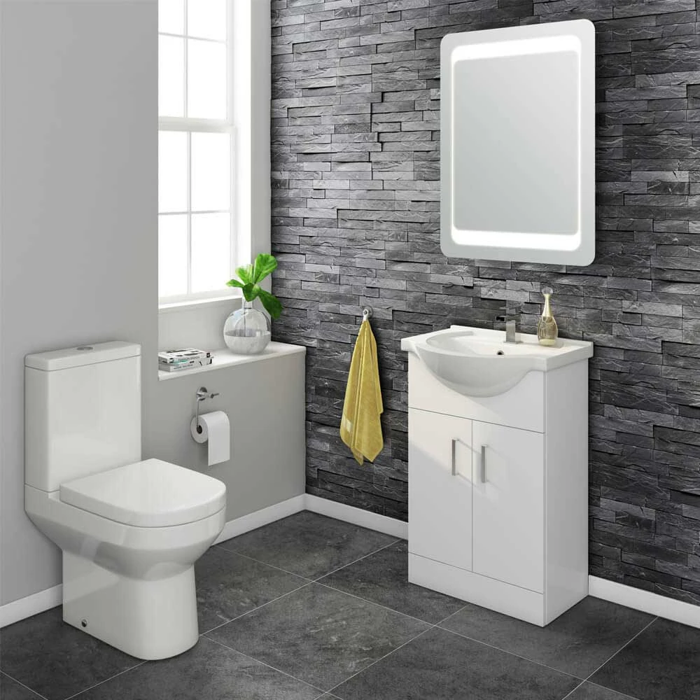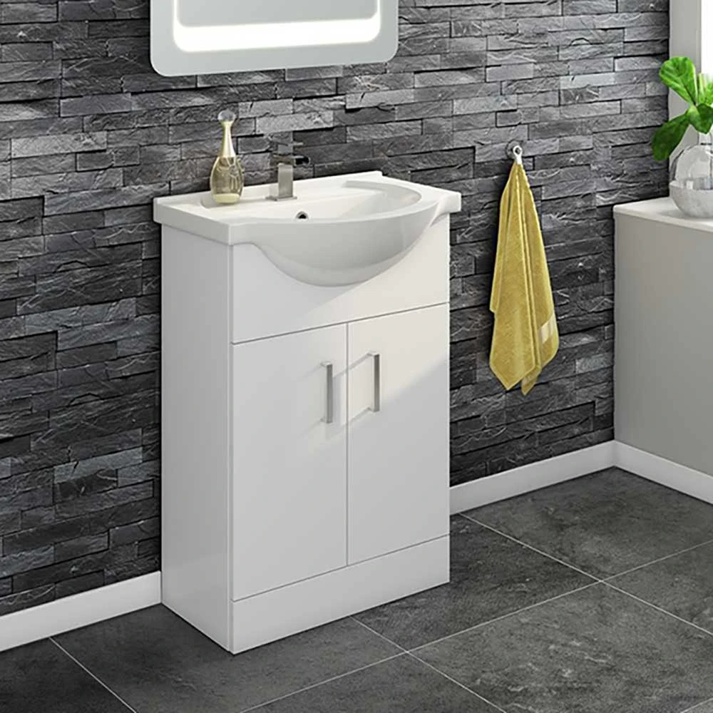 The unit is 550mm wide and has a white ceramic basin above a storage cabinet fitted with chrome handles and soft close doors, perfect for keeping your toiletries tidy and organised. The design of the unit allows it to fit perfectly into any contemporary style bathroom making it an ideal choice for anyone seeking quality and style at a competitive price.