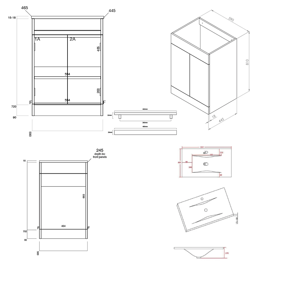 Vellamo Aspire 600mm 2 Door Vanity Unit & Basin – Matt Grey