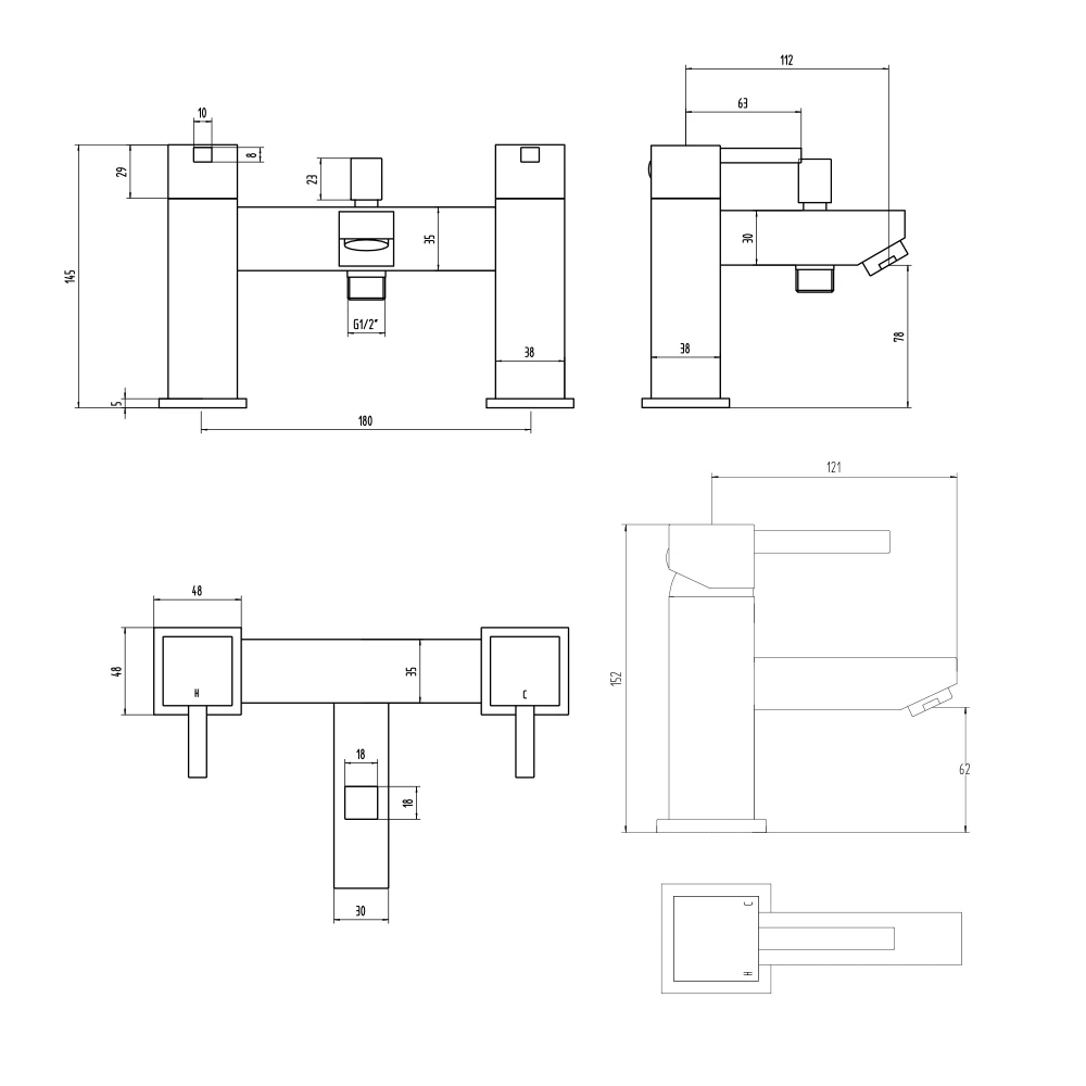 - Bath tap minimum required water pressure: 0.5 bar