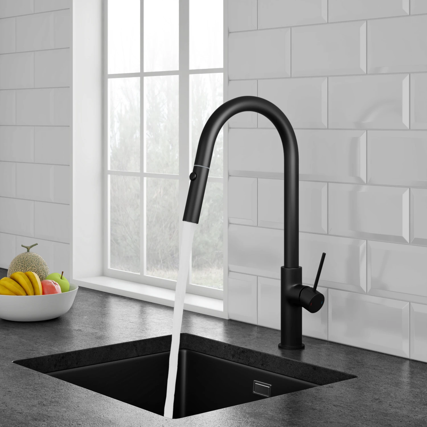 - Easy to use single lever control – control the water flow and temperature with one hand whilst directing the pull out spout with the other