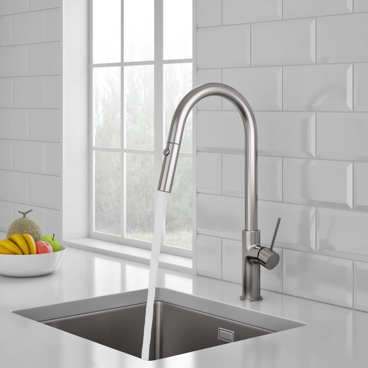 - Self-retracting pull out – spout returns fully to its original position without having to be put back